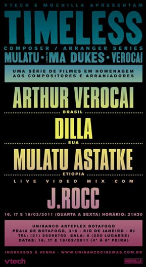 Em 2011 fui responsável pela exibição da série de filmes Timeless no Espaço Unibanco de São Paulo e Rio, com shows de Arthur Verocai (Brasil), Mulatu Astatke (Etiópia) e homenagem a JDilla (EUA), produzidos pelo coletivo Mochilla, de Los Angeles.