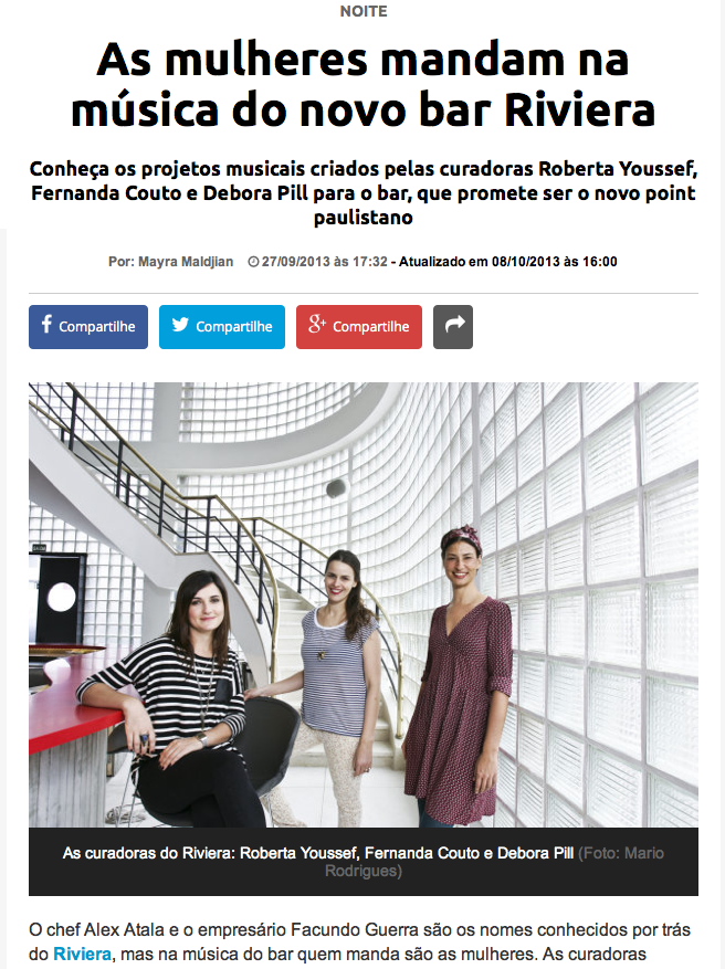 Durante o primeiro ano de vida do Riviera Bar, em São Paulo, fui uma das curadoras musicais da casa com o projeto Improvável.