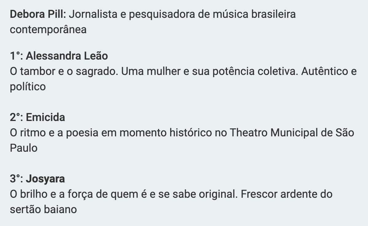 Mais uma vez fui convidada a votar nos três melhores shows nacionais do ano de 2019 para o Guia da Folha.